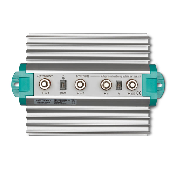 While battery isolators are conventional diode splitters, the Battery Mate's technology is electronic and includes mosfets (transistors). Its components compensate for variations in voltage and ensure that charging continues at the right voltage level, even with several battery banks. The input side on the Battery Mate is connected to the alternator and/or battery charger, while two batteries are connected to the output side. The Battery Mate is easy to install on a DIN rail (industry standard).The Mastervolt Battery Mate can be used in any application even if the standard alternator need external excitation or voltage sensing. In this case the additional IG contact can be connected.