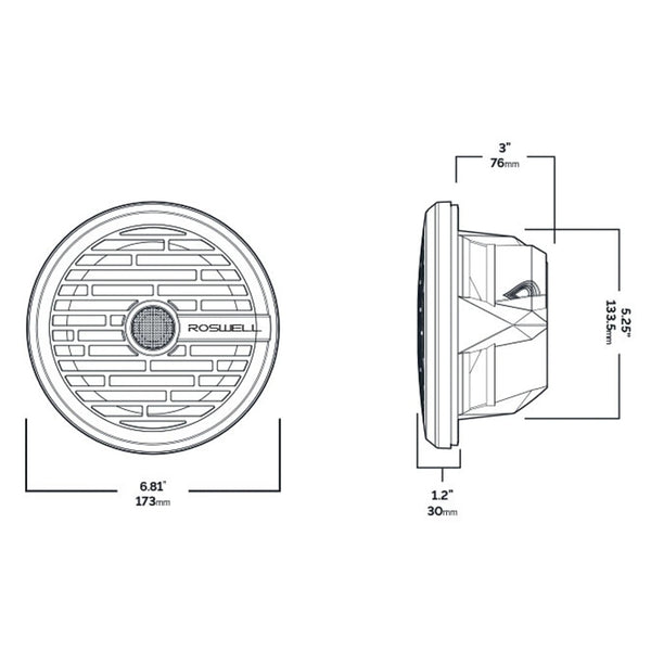 Roswell R1 6.5" Marine Speakers answer the call for clarity and bring a signature sound to every waterway. Defining a culture of acoustic perfection, Roswell R1 Audio has become a catalyst for new experiences, celebrated by those who demand the best. Breaking barriers to deliver R1 Audio in any application, the R1 6.5" was developed to ensure everyone discovers a place where imagination meets sound.